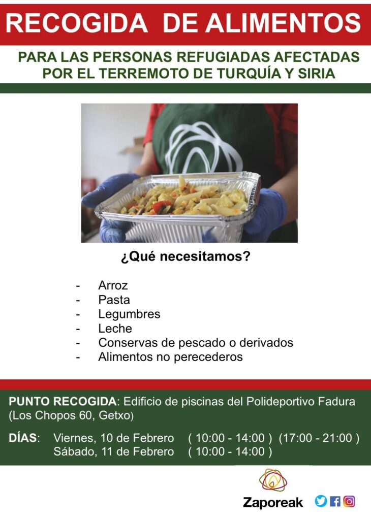 Desde el Área Social del Club animamos a todos los Socios a participar de la acción solidaria promovida por Zaporeak, Asociación a la que pertenece uno de nuestros Socios. Zaporeak lleva más de 7 años colaborando con la población siria, enviando comida y material escolar como ayuda humanitaria. A continuación se añade más información sobre punto de recogida y horarios.