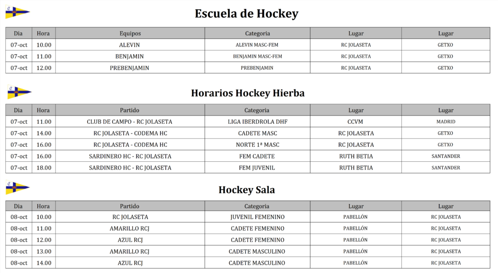 Les informamos a continuación de los horarios de la Escuela de Hockey para el fin de semana del 7 y 8 de octubre. Rogamos máxima puntualidad en la actividad de escuela para la correcta organización de las actividades y el buen desarrollo de estas.