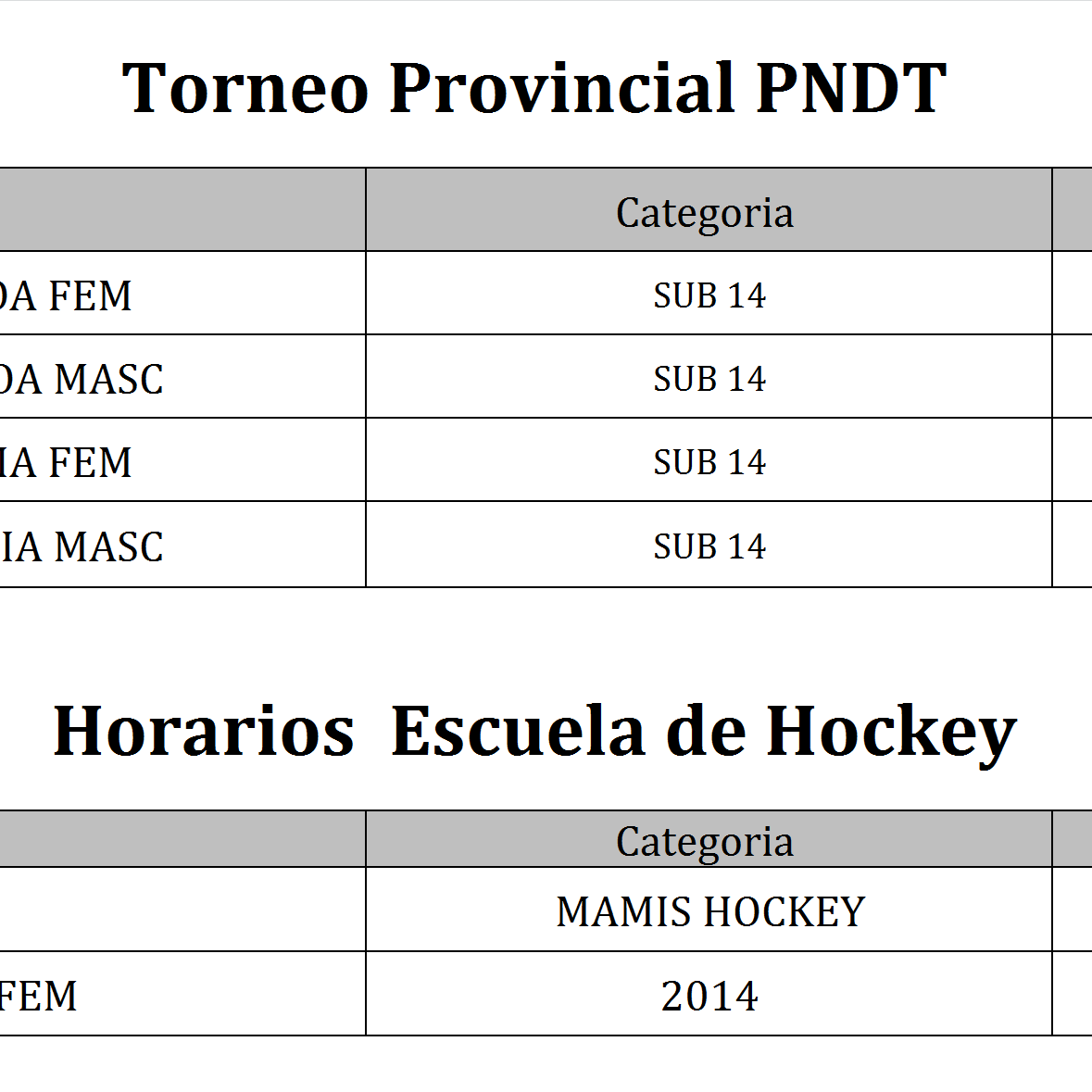 Les informamos a continuación de los horarios de la escuela de hockey hierba para el fin de semana del 19 y 20 de febrero.