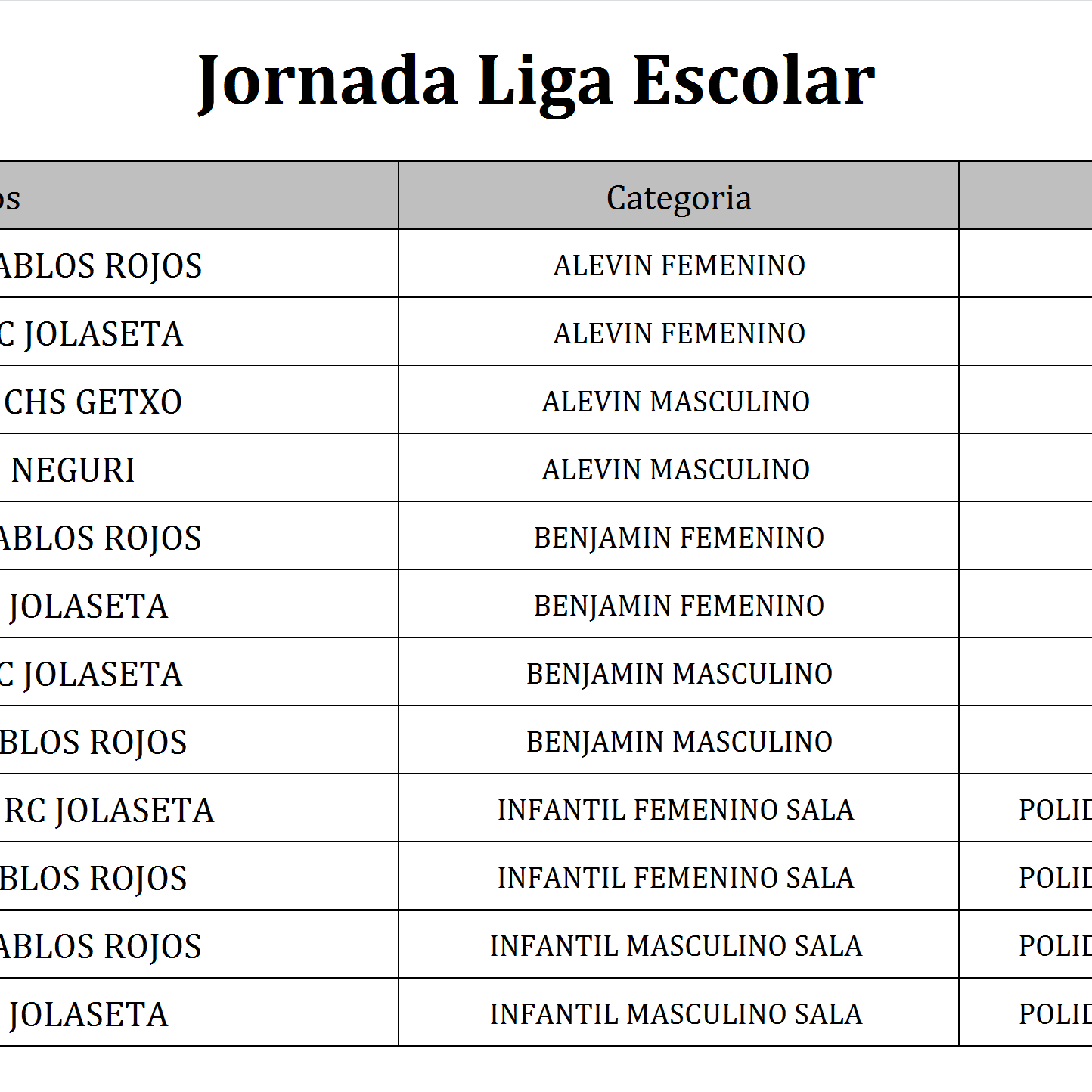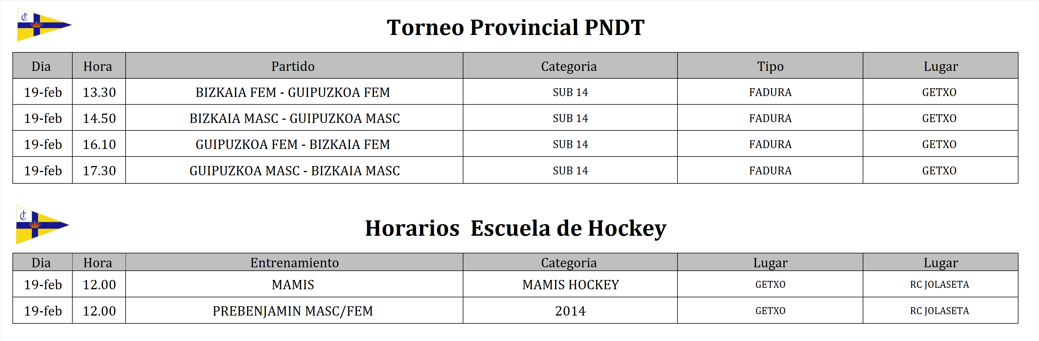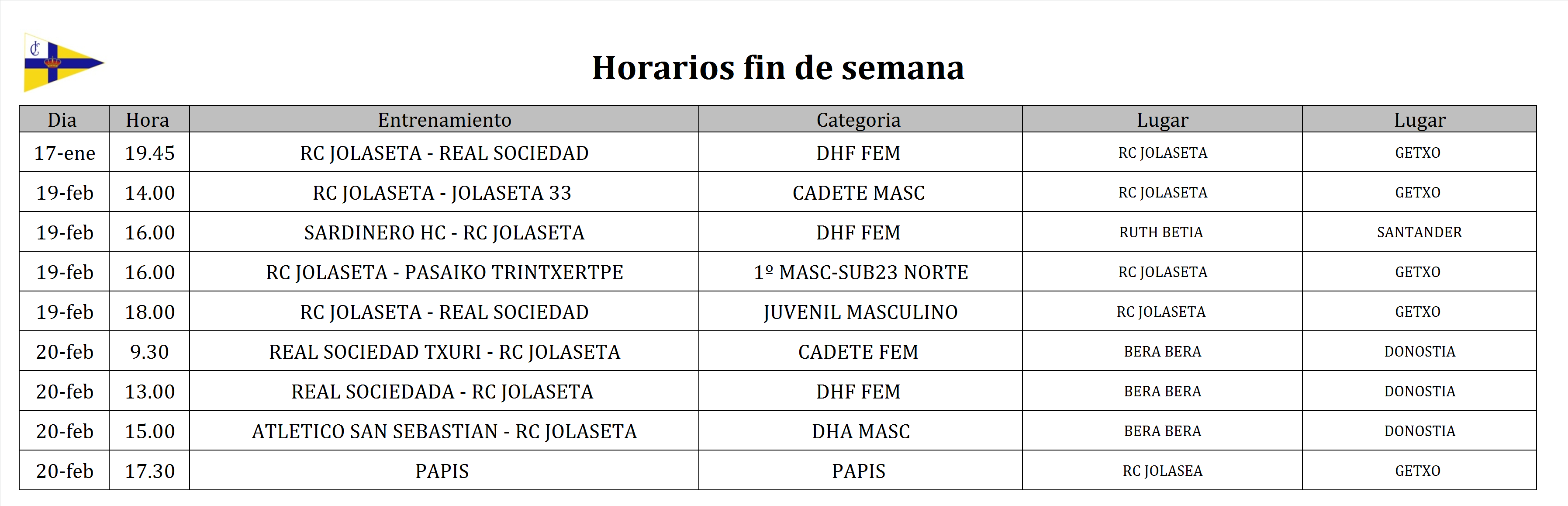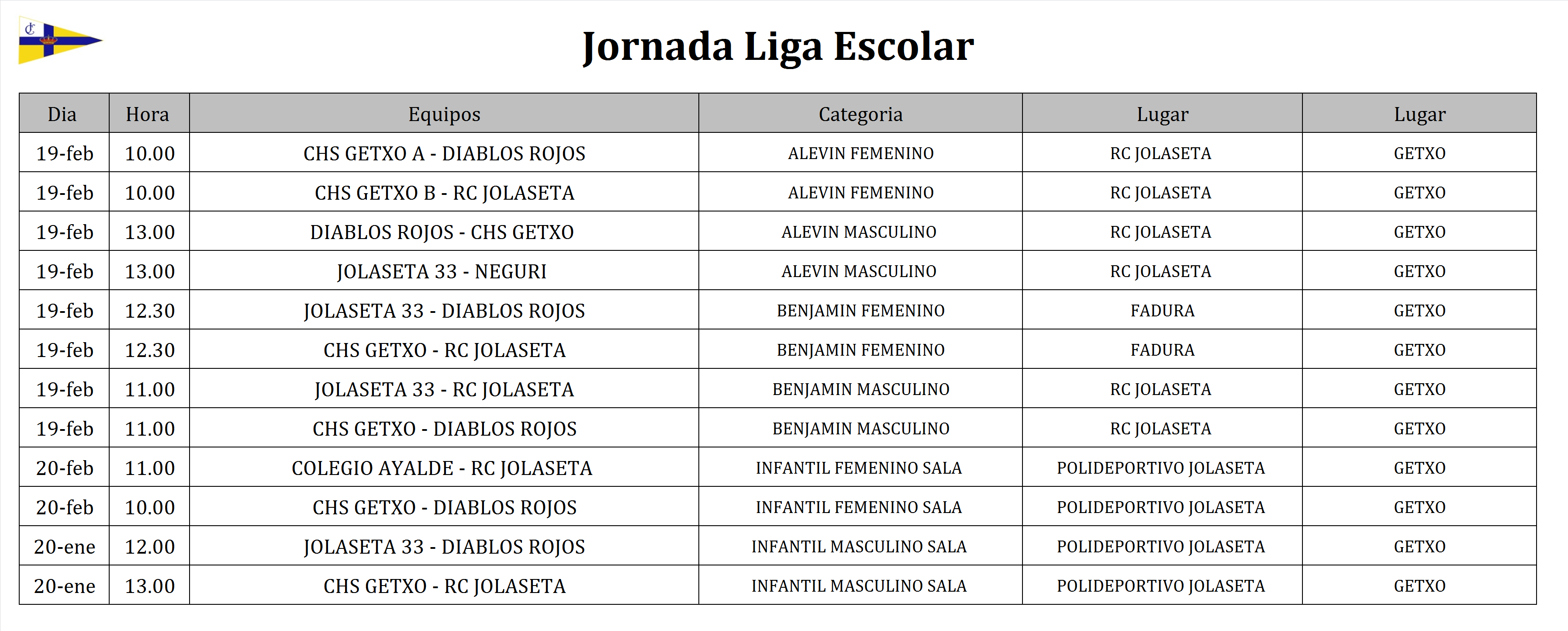 La composición de los equipos de las ligas escolares las encontrará en el tablón del Real Club Jolaseta.