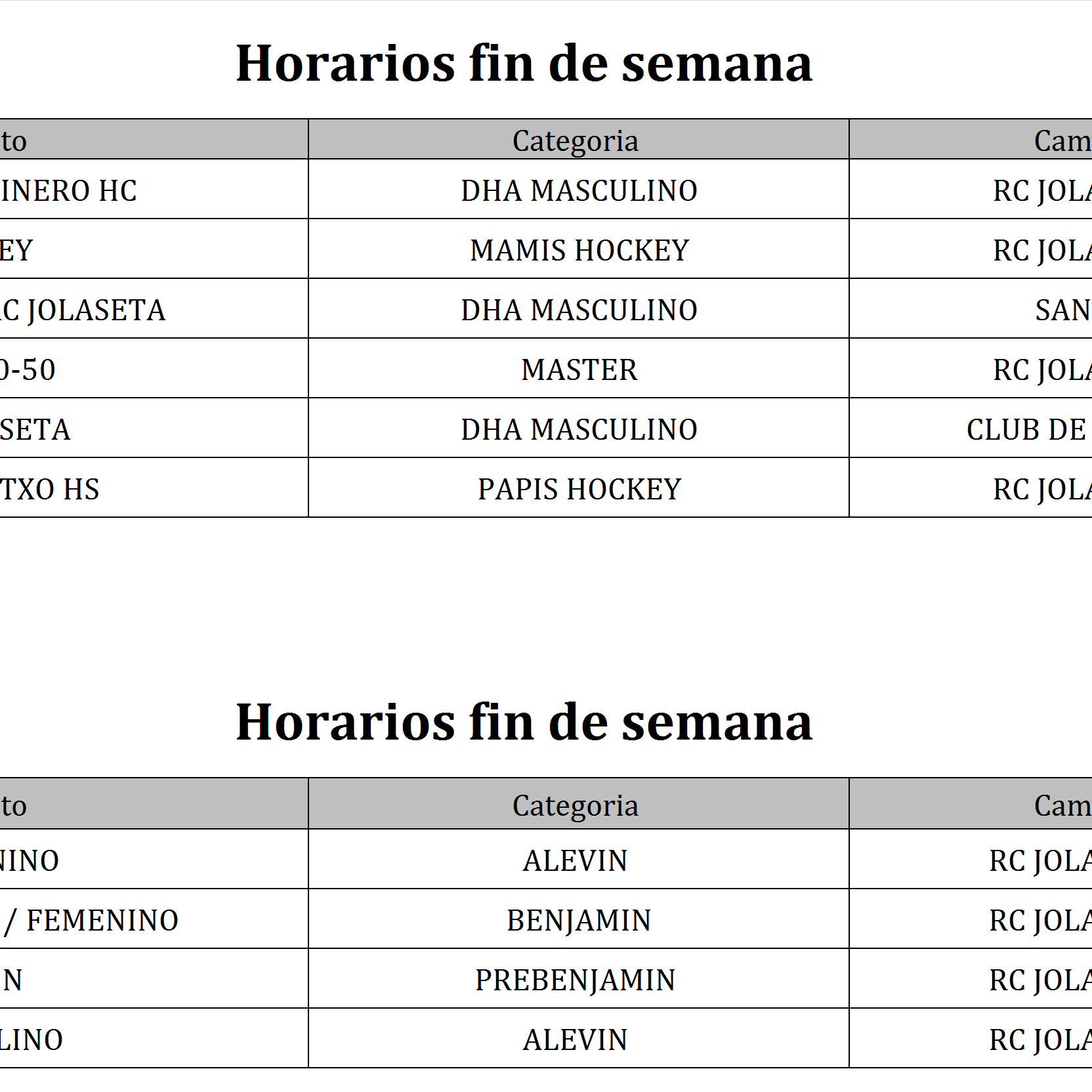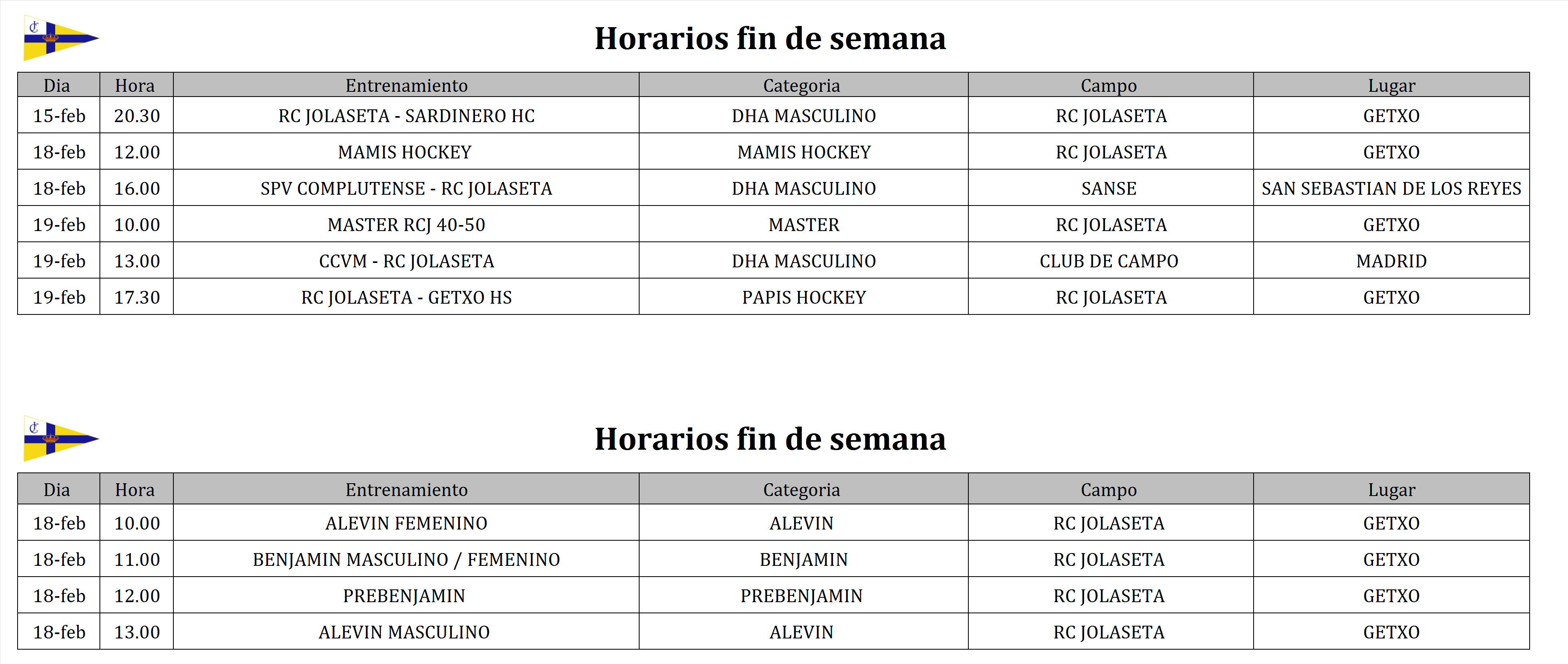 Les informamos a continuación de los horarios de la Escuela de Hockey Hierba para el fin de semana del 18 y 19 de febrero. Rogamos máxima puntualidad para la correcta organización de las actividades y el buen desarrollo de las mismas.