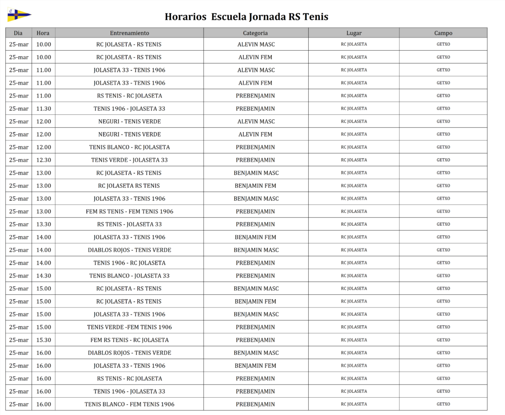 Para la jornada de la Escuela de Hockey Hierba con la RS Tenis de Santander del sábado 25 de marzo, todos los jugadores de la categoría alevín deberán estar en Jolaseta a las 9.40 horas. Les rogamos máxima puntualidad para la mejor organización y cumplimiento de todas las actividades. Recomendamos estar en el campo 15 o 20 minutos antes del inicio de su actividad. La composición de los equipos para la Jornada contra la Real Sociedad de Tenis de Santander la encontraran en el tablón de anuncios del Club.