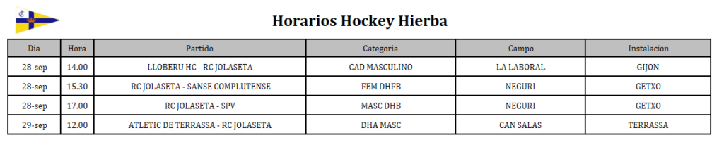 Les informamos a continuación sobre los horarios de las actividades de hockey hierba para el fin de semana del 28 y 29 de septiembre. Con motivo de la celebración del Campeonato de España de Hockey+ en nuestras instalaciones, los alumnos no tendrán actividad en la mañana del sábado 28 de septiembre. Esta actividad para los alumnos de la escuela en prebenjamín, benjamín y alevín se trasladará al sábado 21 de diciembre.
